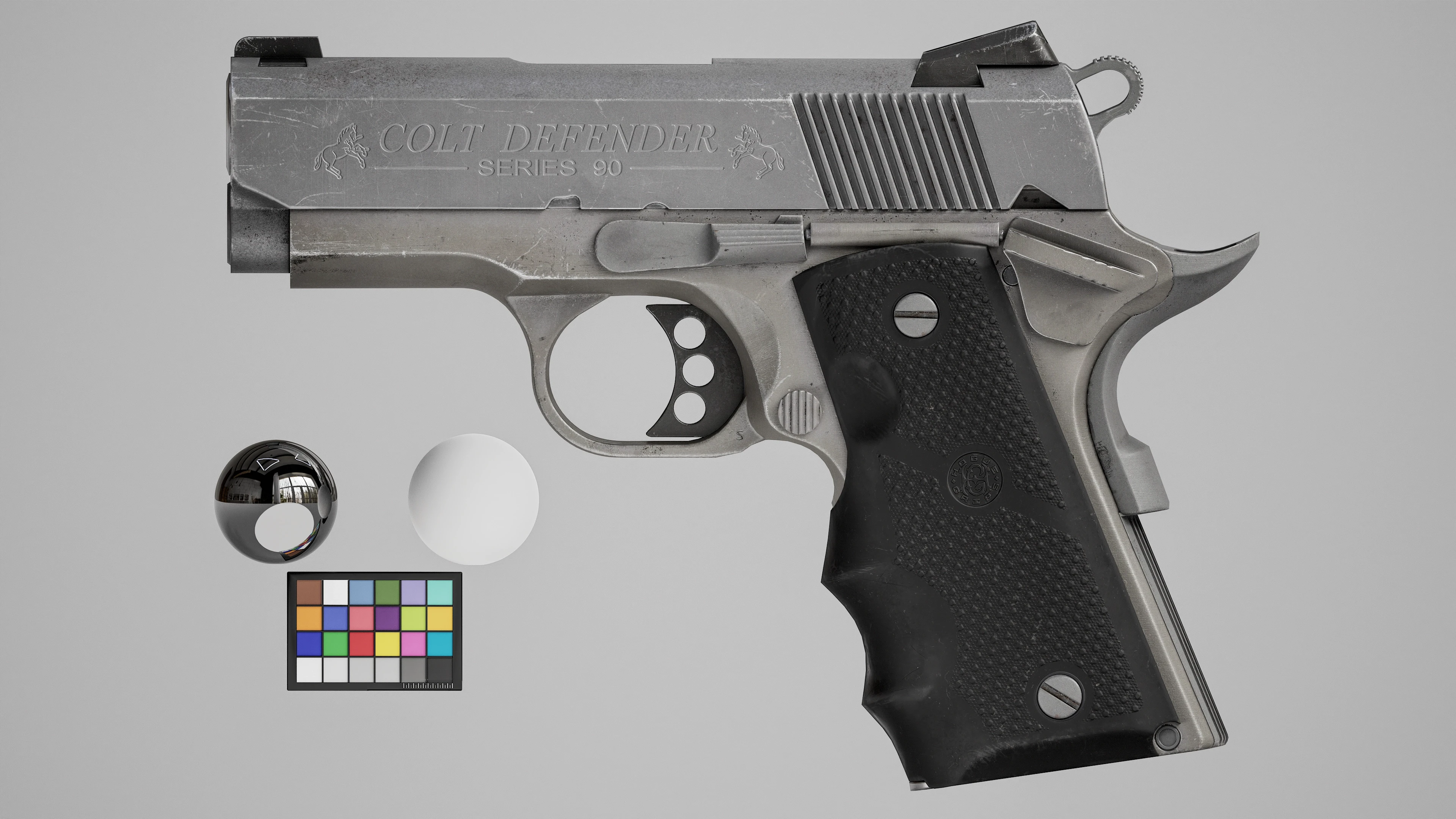 Personal practice in weapon modeling and rendering. The main focus is on materials. Colt Defender .45 is created in a realistic style with an emphasis on game and cinematic references.